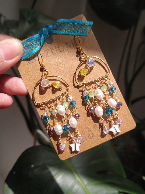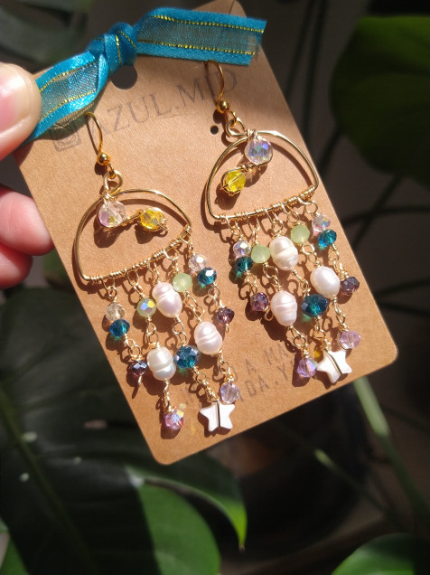 Hechos a mano con alambre hipoalergénico,ganchos en acero inoxidable,perlas de río y cristal checo .