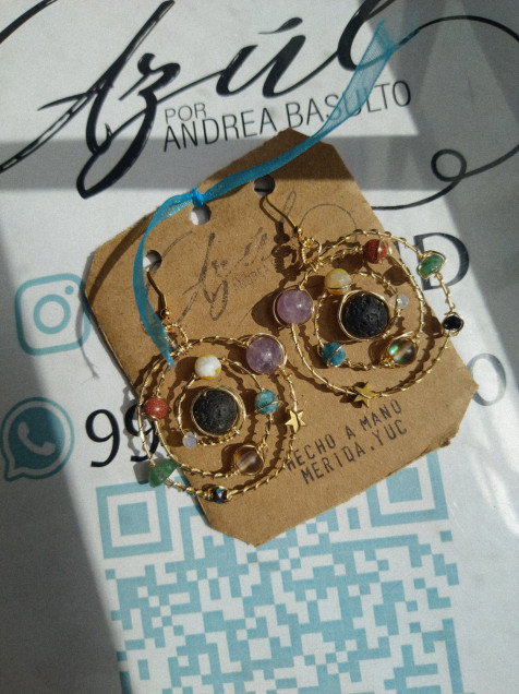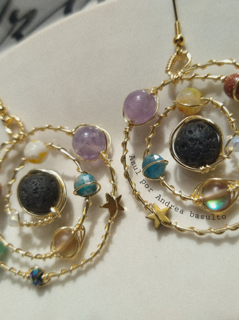 *Material* : gancho en acero inoxidable chapado en 18k./bordado en Alambrismo chapa de oro 14k.