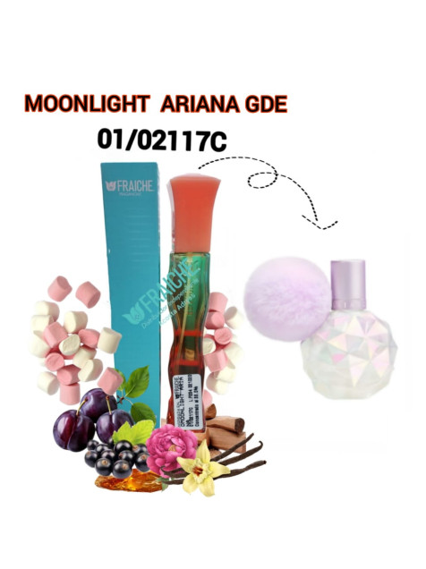Descubre la magia de Moonlight Ariana GDE. Un aroma dulce y juguetón con notas de ciruela, vainilla y un toque floral. Su envase iridiscente y pom-pom lo hacen irresistible. ¡Perfecto para darle un toque mágico a tu día!