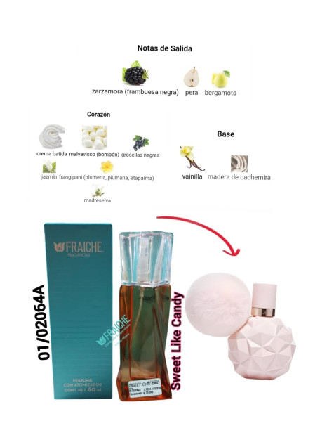 "SWEET LIKE KANDY": Un perfume dulce y coqueto. Notas de zarzamora, crema batida y vainilla se mezclan en una fragancia irresistible. El frasco rosa geométrico y el pompón evocan un mundo de fantasía. ¡Un "must" para las más dulces!