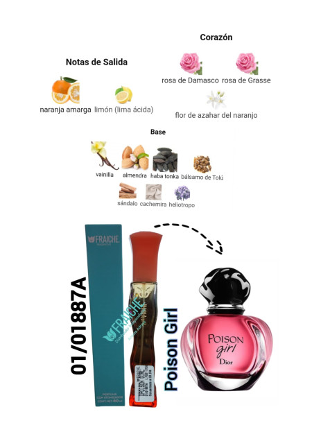 Déjate hechizar por el aroma seductor de Poison Girl . Esta fragancia icónica, encapsula la feminidad moderna. Un toque dulce y audaz para la chica que llevas dentro.