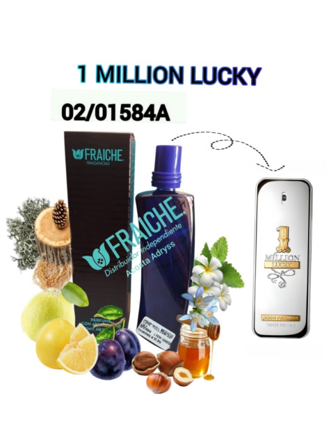 ¡Atrévete a tentar a la suerte! 1 Million Lucky , una fragancia que te hará sentir como un ganador. Su aroma te hace sentir la frescura de la ciruela y la avellana, creando una esencia irresistible y duradera.
