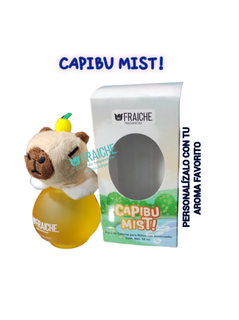 ¡El CAPIBU MISTI hará que huelas increíble! Viene en un envase súper cute en forma de capibara de peluche. ¡Perfecta para consentirte con un aroma delicioso y divertido!