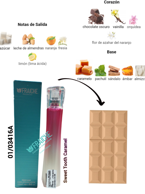 Notas dulces de caramelo, chocolate y vainilla se mezclan para un aroma irresistible y sofisticado. ¡Un placer culpable que puedes usar todos los días!