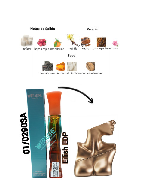 ¡Un aroma que te envuelve! Notas dulces y frutales dan paso a un corazón cálido de vainilla y cacao. Las notas de fondo amaderadas y el toque de almizcle le dan un toque final irresistible. ¡Pruébala!