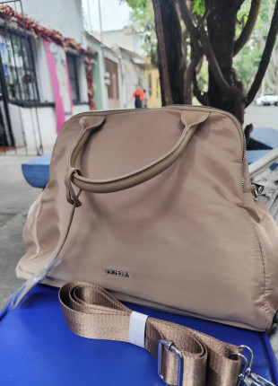 Mochila DE TELA, COLOR BEIGE CON CAFE AGYD5437