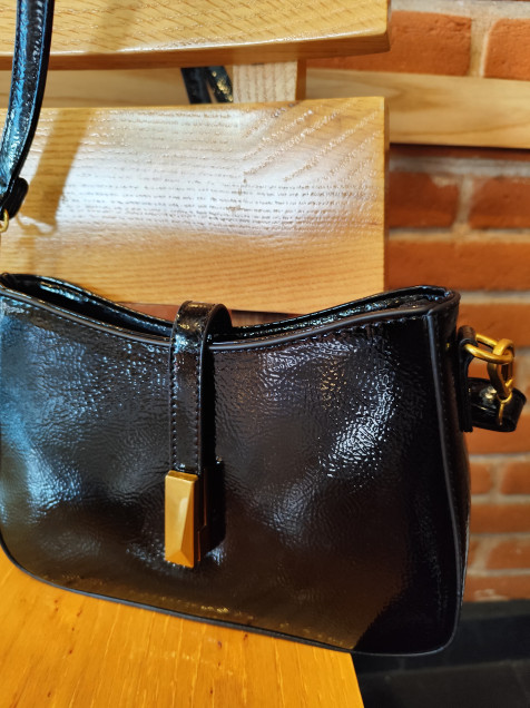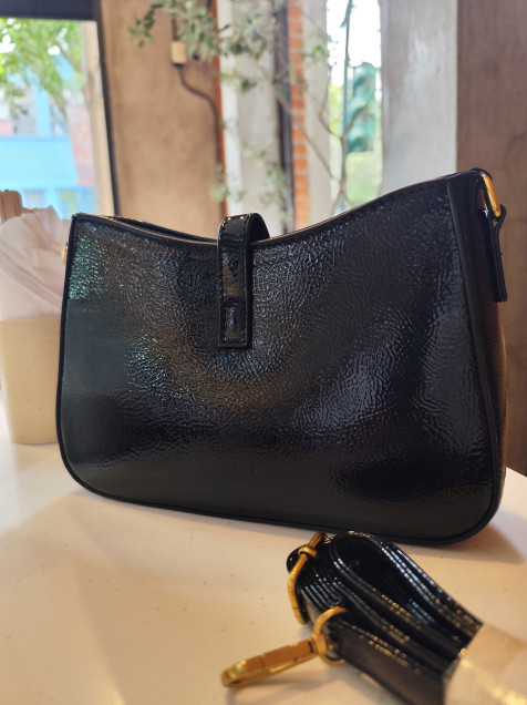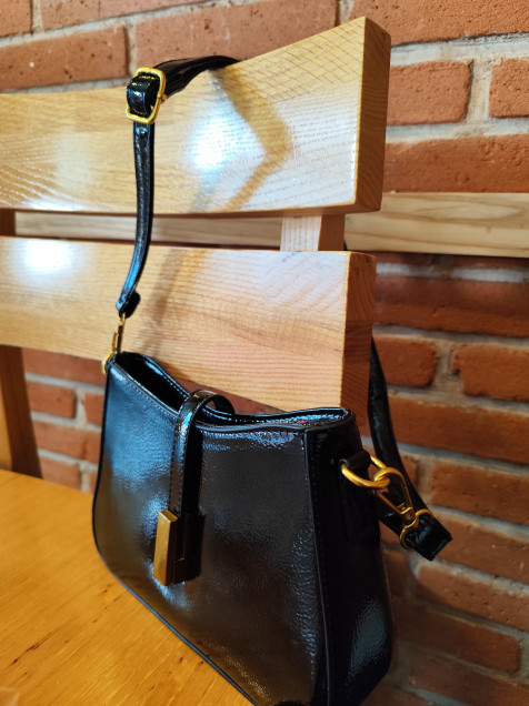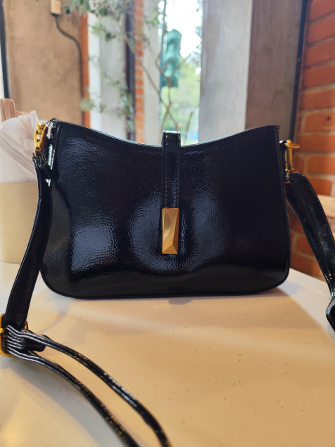 Hermosa bolsa piel vegana brillosa , mide 24*6*15 cm