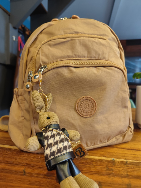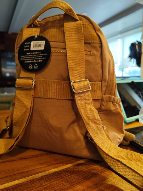 Hermosa mochila de tela COLOR CAFE CLARO, mide 30*12*30 cm