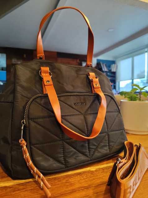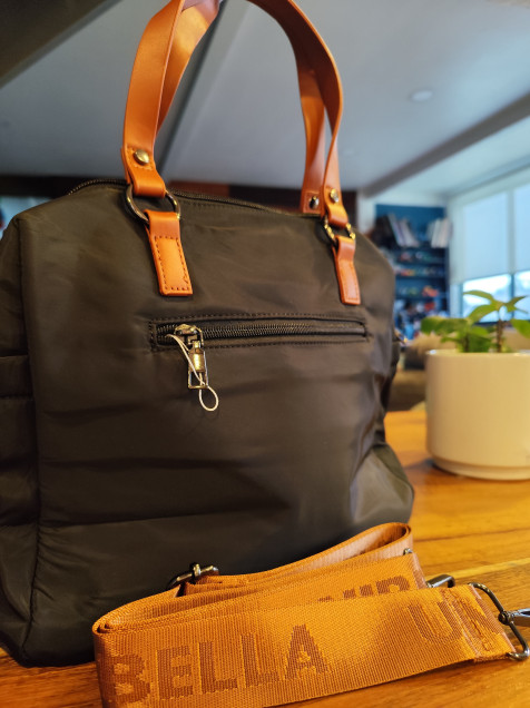 Hermosa bolsa de tela COLOR NEGRO-CAMEL , mide 30*15*23 cm en verdad es hermosa