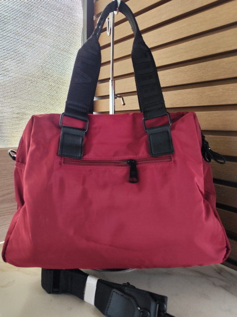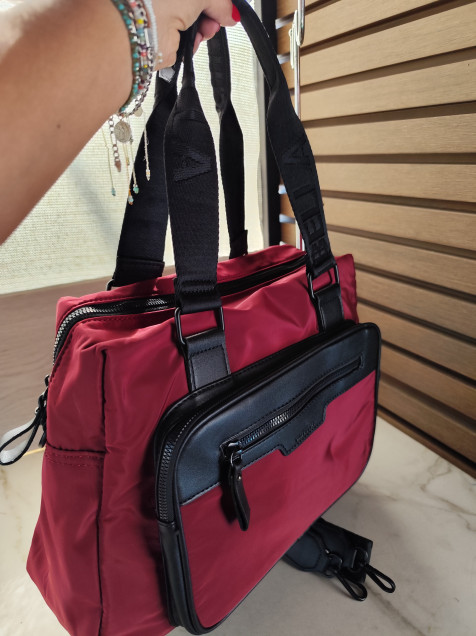 Bolsa de mano de tela súper resistente COLOR VINO-NEGRO, mide 37*12*27 cm