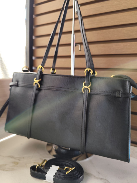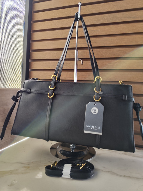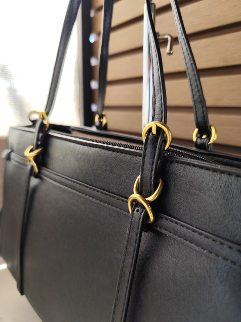 Hermosa bolsa COLOR NEGRO piel vegana lisa , mide 37*12* 19 cm