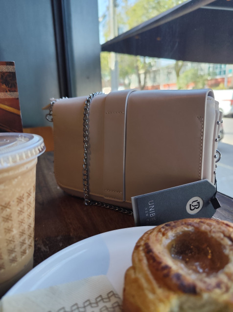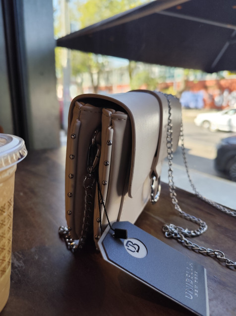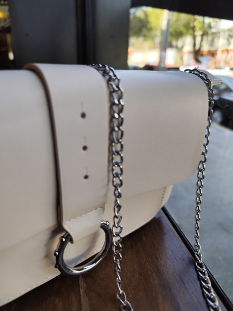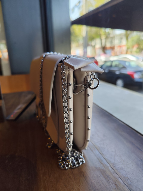 Hermosa bolsa con aplicaciones en plata, cadena como straps !! Te va a encantar 🤎