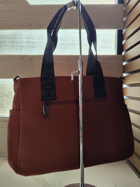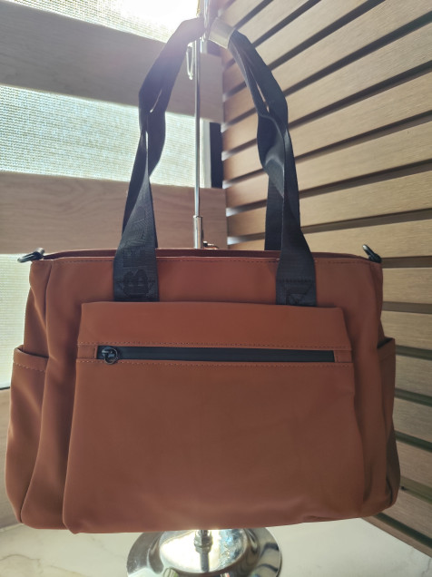 Hermosa bolsa COLOR CAFE CLARO, mide 38*12*24 cm , de tela ideal para llevar tu lap , mide