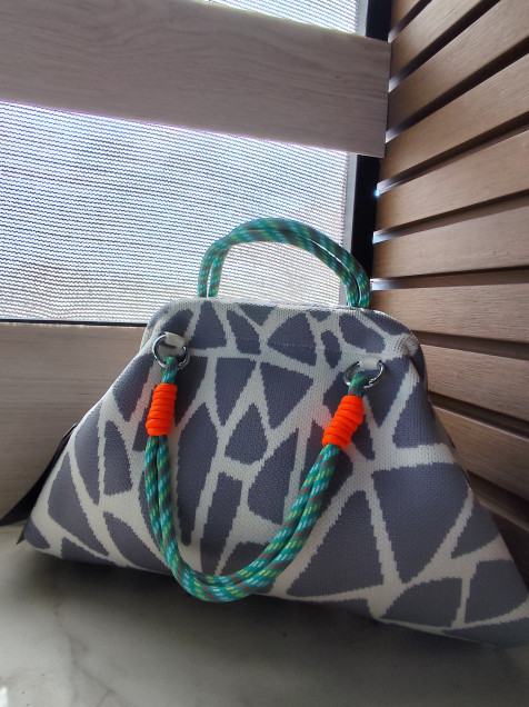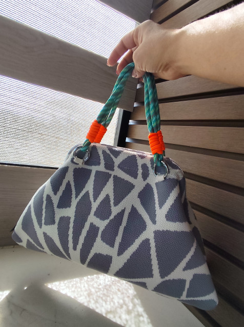 Hermosa bolsa de tela COLOR GRIS- BLANCO-VERDE-NARANJA
