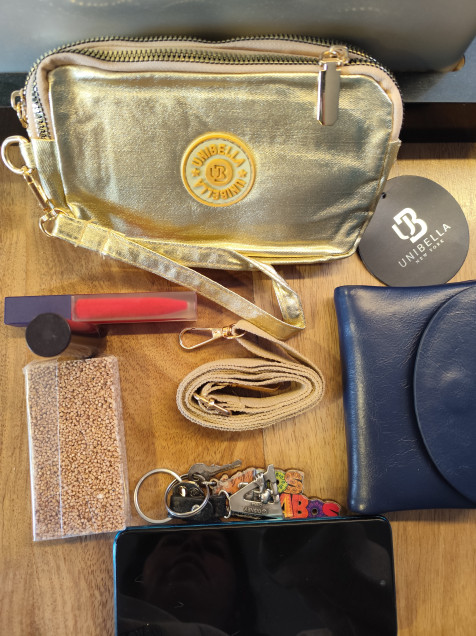 Bolsita de mano DORADO METALICO , mide 20*5*12 cm