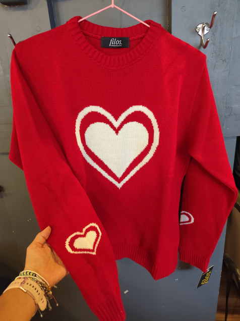 Hermoso sweter COLOR ROJO CON HUESO. UNITALLA