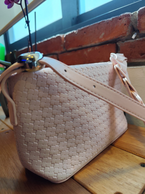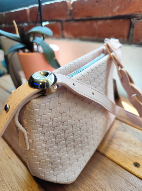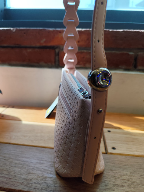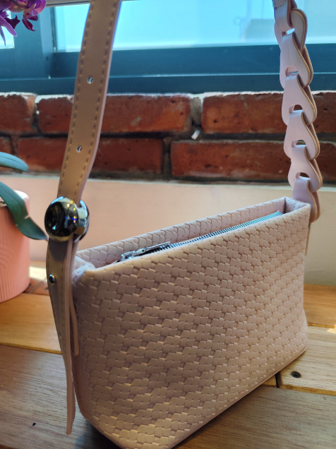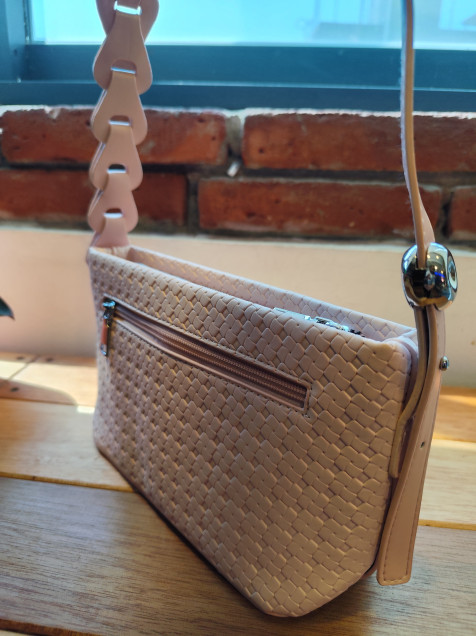 Hermosa bolsa de mano con texturas en el cuerpo de la bolsa COLOR ROSA BAJITO (PALO DE ROSA)