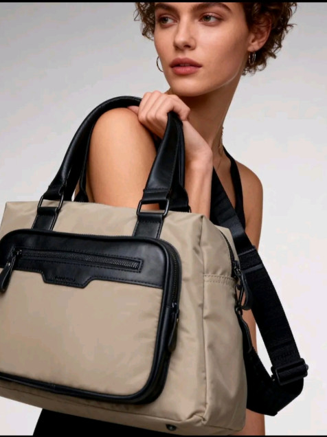 Hermosa maleta COLOR BEIGE CON NEGRO, mide 37*12*27 cm