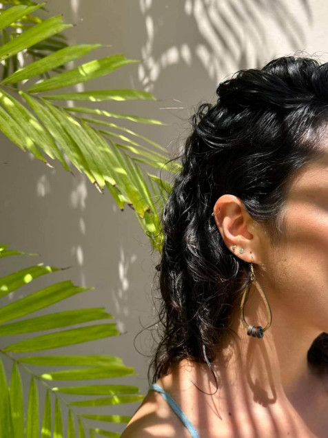 Un diseño ovalado único en color cafe que destacaa por su versatilidad, tienen un tamaño de 4cm y fabricados en mdf de aalta calidad, estos aretes cuentan con 3 círculos azules desmontables que puedes quitar y poner como charms, permitiéndote personalizar tu estilo según la ocasión. También cuenta con gancho en chapa de oro que asegura la durabilidad, este modelo es la elección perfecta para quienes buscan una combinación dediseño inovador y funcionalidad.