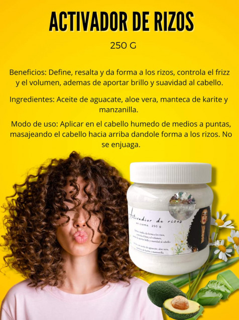 Beneficios: Define, resalta y da forma a los rizos, controla el frizz