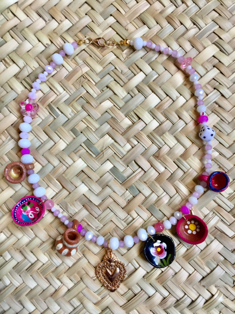 Collar Choker Rosa Mexicano Miniaturas Artesanales