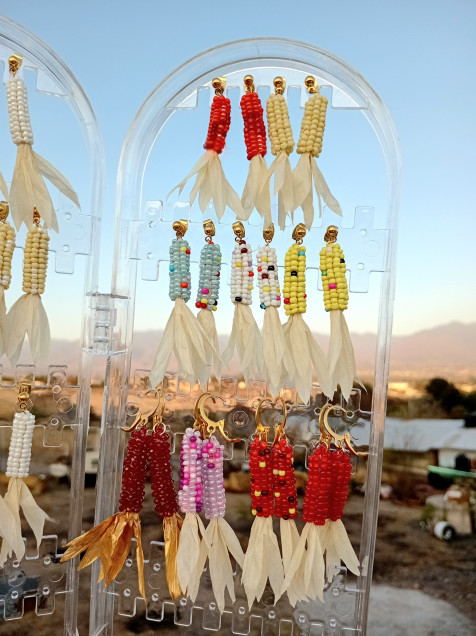 Aretes De Elote En Chaquiras Y Acero Inoxidable