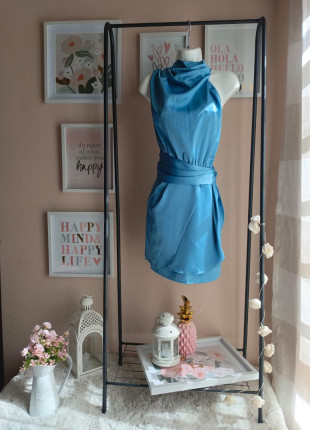 VESTIDO ASIMETRICO AZUL CELESTE TALLA M