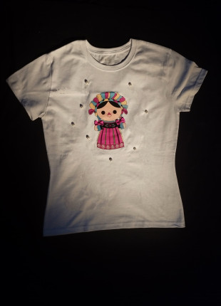 Camiseta de Lili Mexicana con Perlas color Blanco