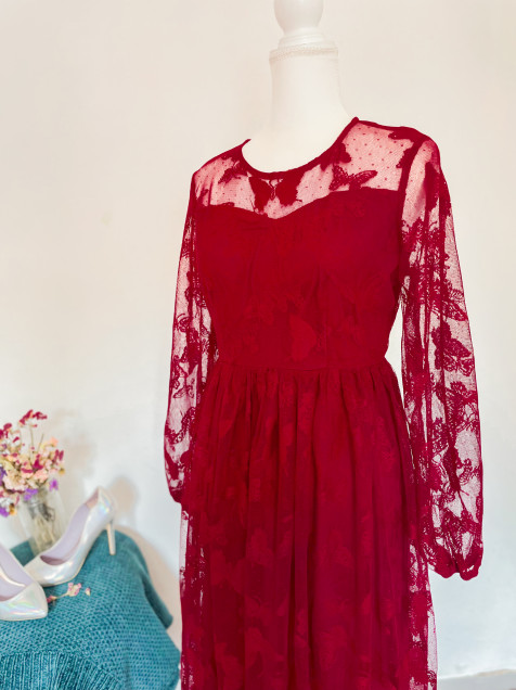Vestido malla burdeos