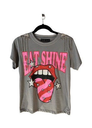 T Shirt Rolling Eat Shine con pedreria en hombros