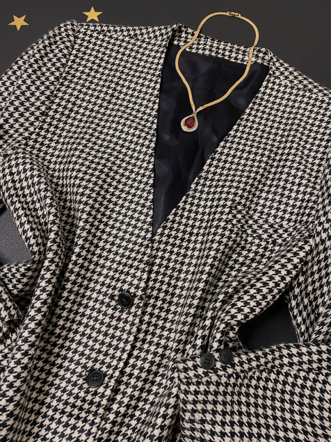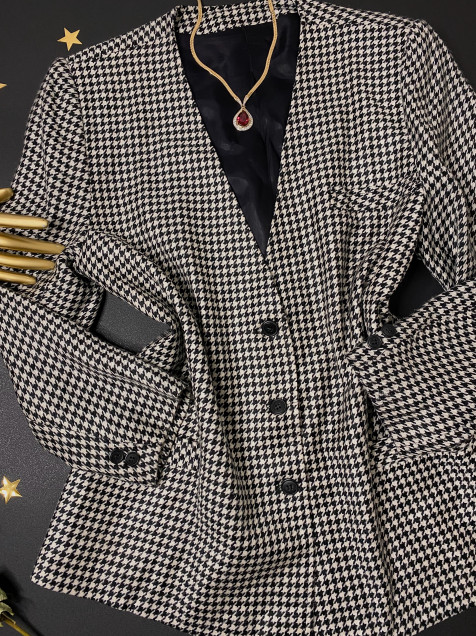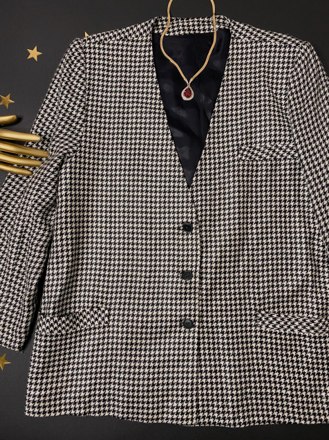 Blazer pata de gallo con forro, manga larga, bolsillos reales frontales, 3 botones frontales. CERO DETALLES TALLA M/L HOMBRO 40CM MANGA 57CM PECHO 106CM LARGO 73CM