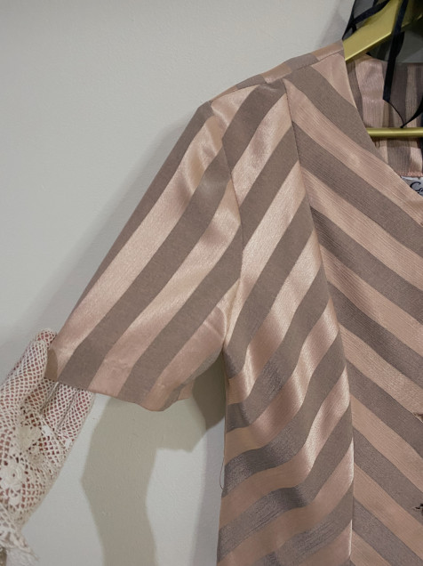Diseño satinado, manga corta, botones de tela. Estado: Perfecta. TALLA S/M Hombro 40cm, Manga 25cm, Pecho 100cm, Largo 56cm