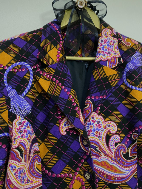 Blazer colorido, diseño diverso, manga larga, forro interno, ESTADO: Perfecto. TALLA M Hombro 44cm, Manga 60cm, Pecho 100cm, Largo 68cm