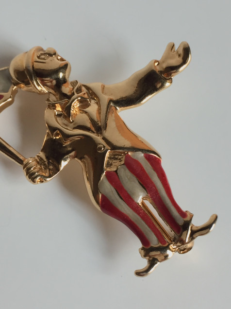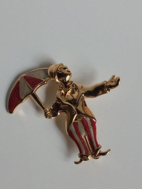 Metálico dorado brillante con diseño de payaso con paraguas.