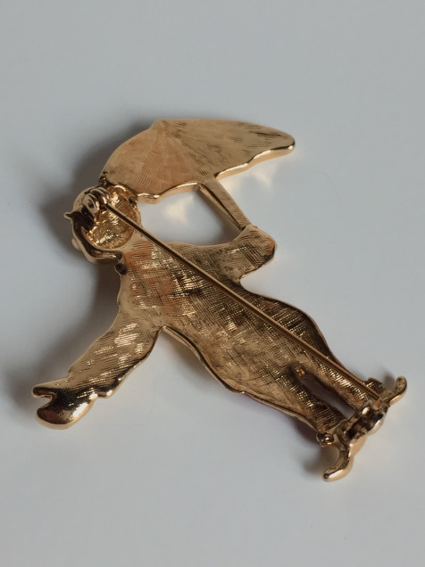Detalles en pantalón y paraguas de esmalte con respaldo y broche en buenas condiciones.