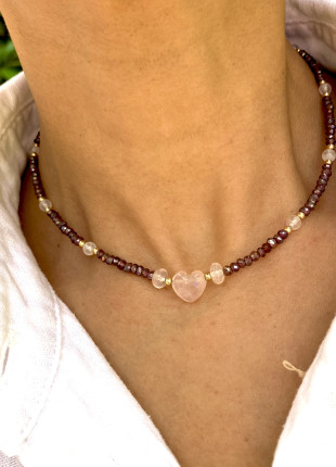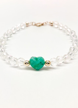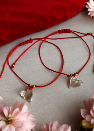 Dúo de pulseras corazón cuarzo cristal e hilo rojo
