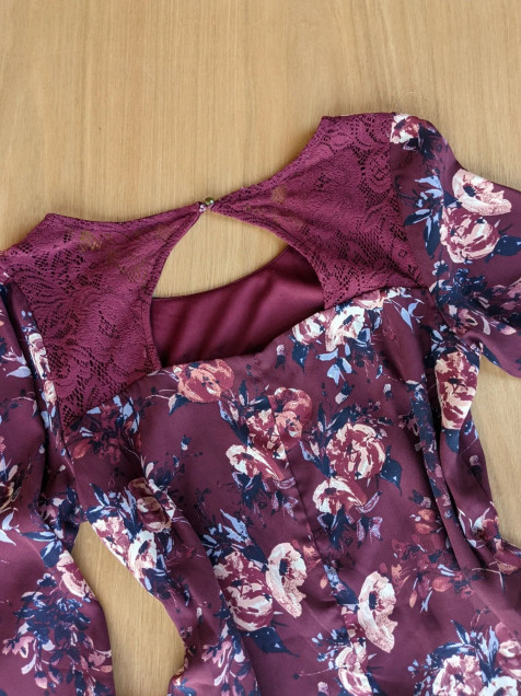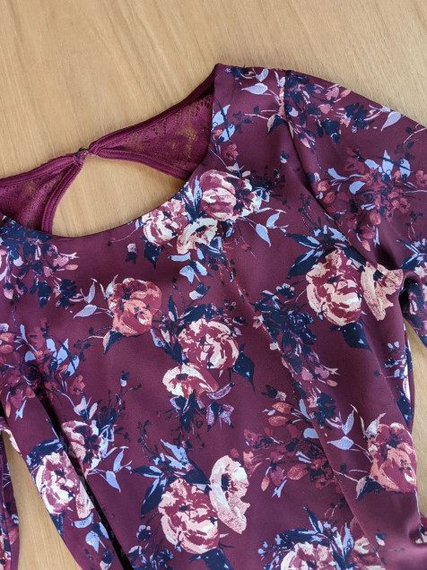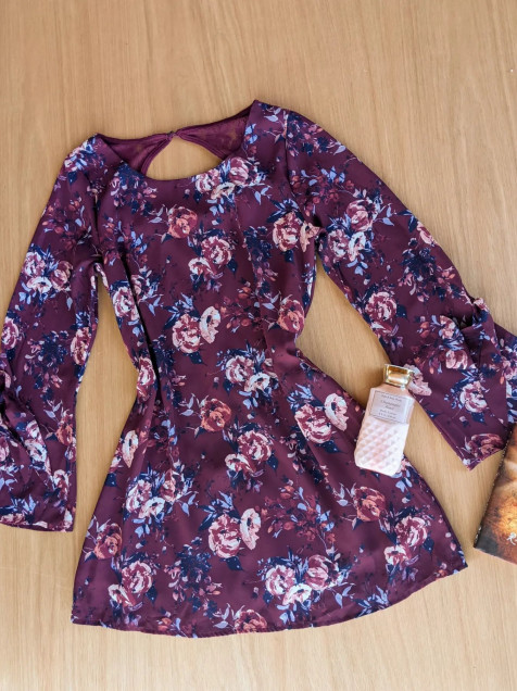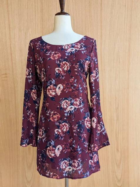 Vestido floreado con manga acampanada y con forro.