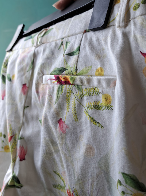 Pantalones rectos floreados, pueden quedar al tobillo, dependiendo estatura.
