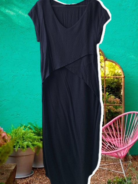 Blusa asimétrica azul marino, la puedes usar con jeans, falda, short, sobre tu traje de baño... Manga corta como doblada. Frente cruzado.