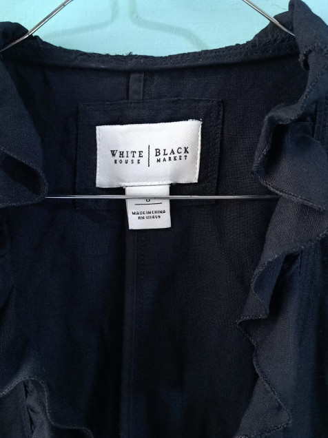 Blusa escotada o saquito ligero, manga 3/4 con holanes en pecho y mangas.