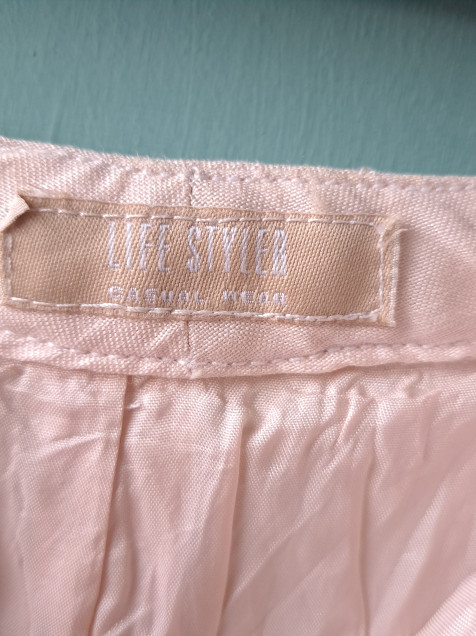 Pantalones de lino muy cómodos. El color es entre beige y rosa muy pálido.
