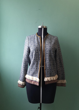 Talla L | Blazer sin solapa, tejido de grecas