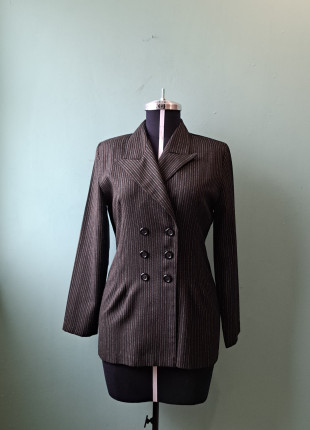 Talla M | Blazer vintage cruzado negro con rayas