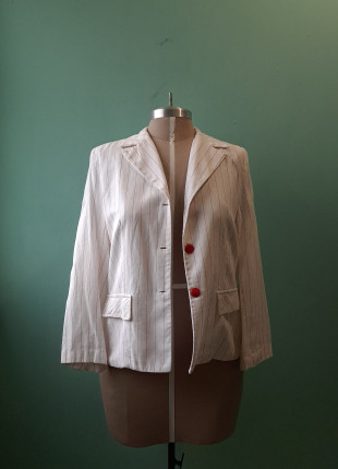 Talla L | Blazer de lino blanco con rayas rojas