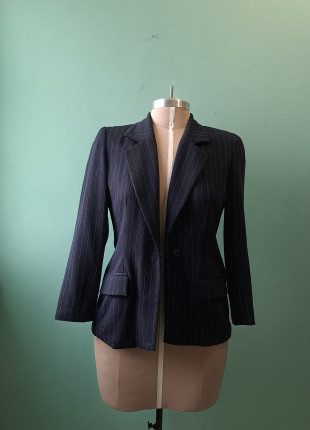 Talla L | Blazer vintage azul marino con rayas blancas