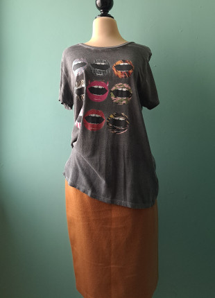 Talla L | Playera gris con estampado de bocas