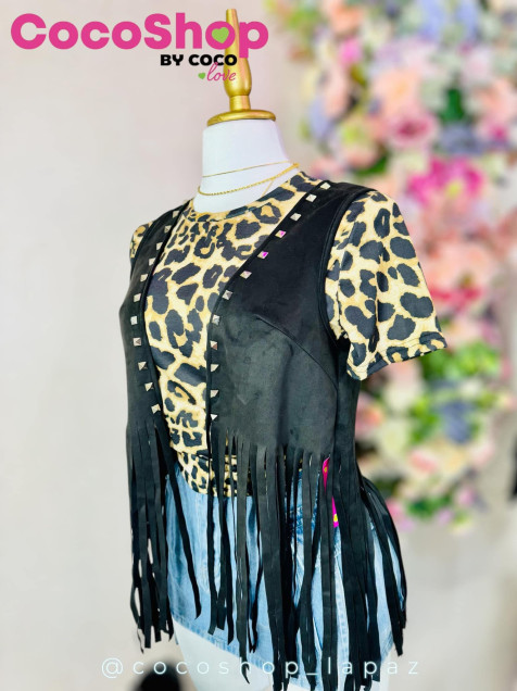 Chaleco color negro con barbitas