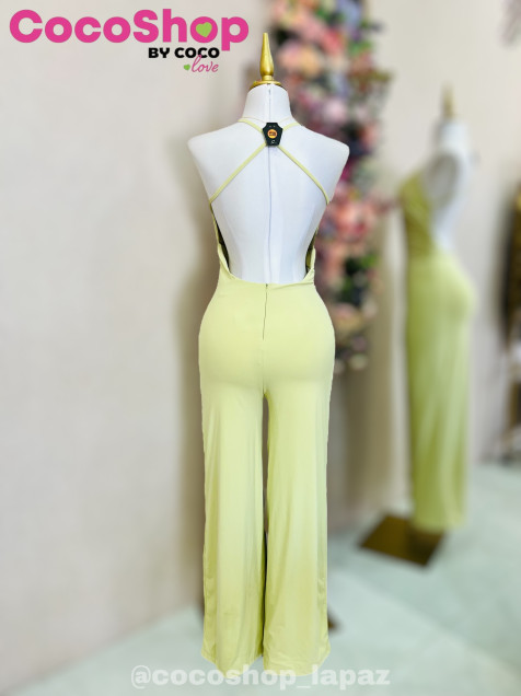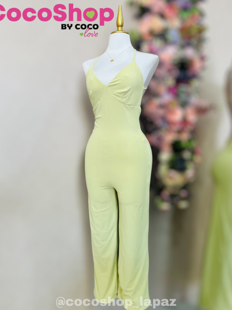 Palazzo color verde con espalda descubierta