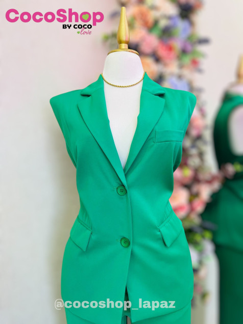 Conjunto verde esmeralda, diseño sin mangas