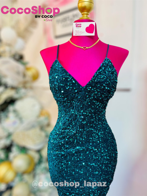 Diseño ajustado, con lentejuelas verde esmeralda